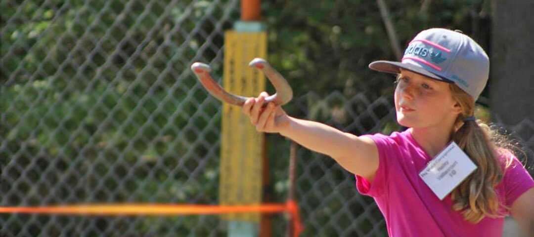 - Для тех, кто помладше: здесь задача состоит в том, добросить две свои подковы как можно ближе к колышку, превзойдя в это оппонента;